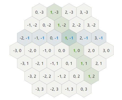 The neighbor delta is the axial coordinate returned from step 4. Add neighbor delta to the current world’s gridX, gridY and we’ll get the new grid.